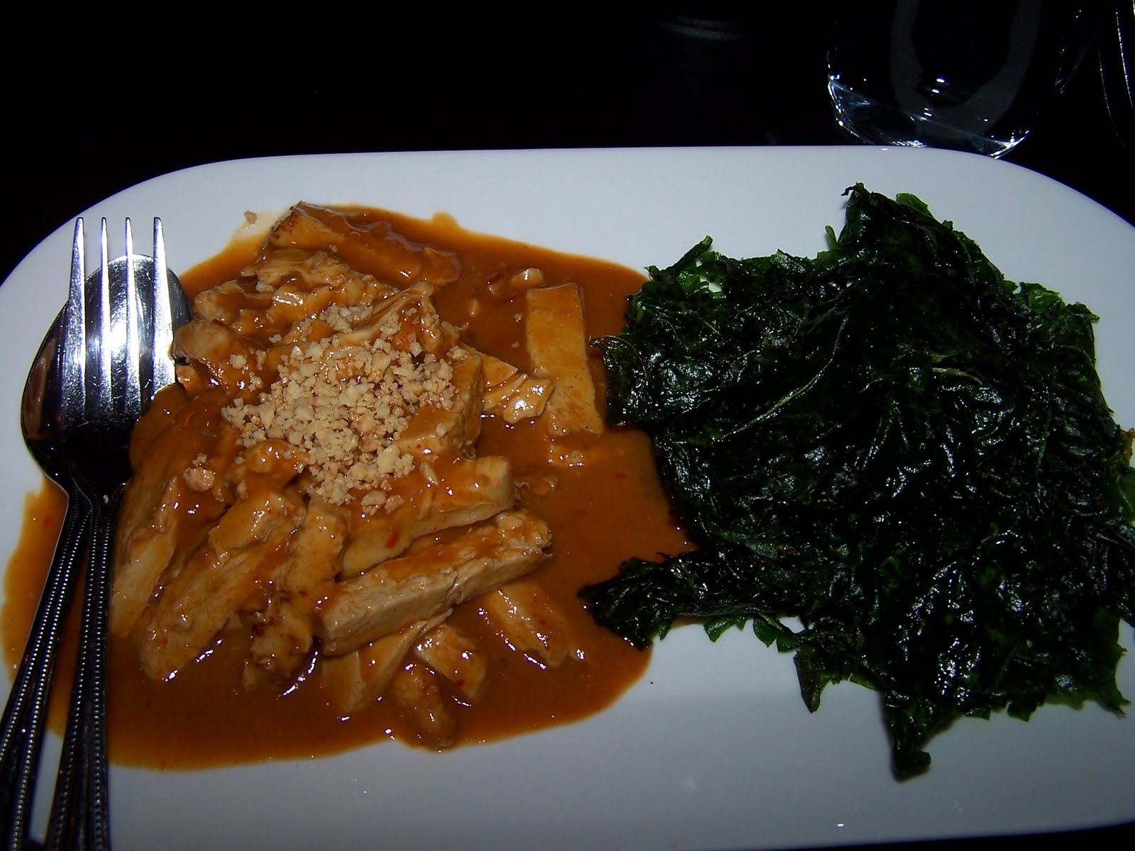 Above is a picture of the peanut sauce chicken with crispy spinach.