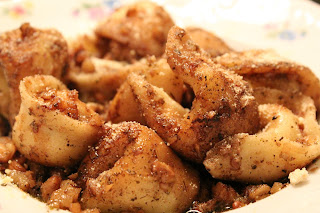 The sauce in this recipe was modified from the "Sage-Walnut Butter" tortellini sauce in the Food Network Magazine March 2011 edition. I veganized it and halved the recipe. The tortellini and dough are my recipes, though.